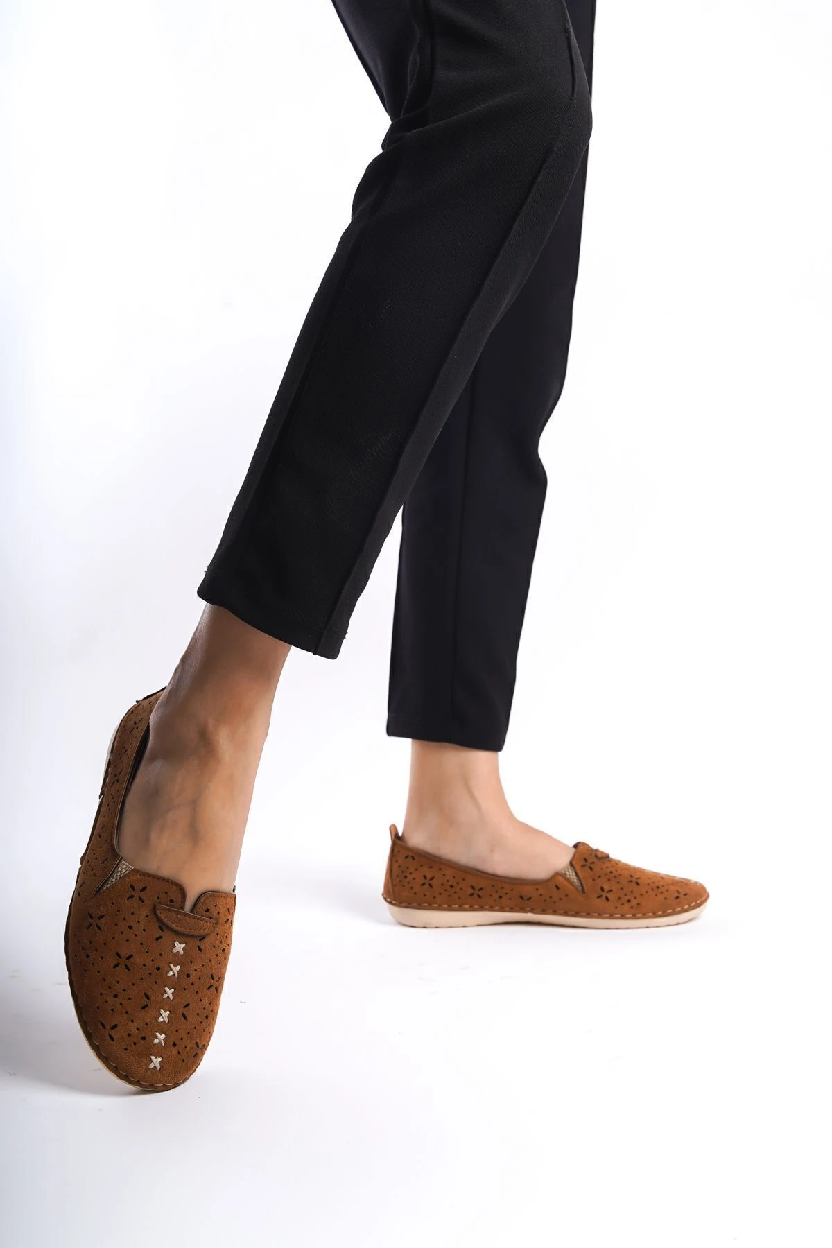 Kadın Zincir Detaylı Delikli Yumuşak Hafif Günlük Yazlık Anne Loafer Ayakkabı - nut